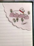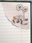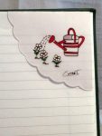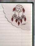 | Ingrédients/Fabrication: | Chacun des signets de coin de page est fait entièrement à la main à partir d’une grande feuille de papier européen soit, la conception de la forme du signet, la création du dessin, la fabrication et le montage du signet en terminant par une peinture permanente sur chacun d’eux. Ils sont donc tous faits et peints individuellement à la main. Il n’y a aucun procédé mécanique. |